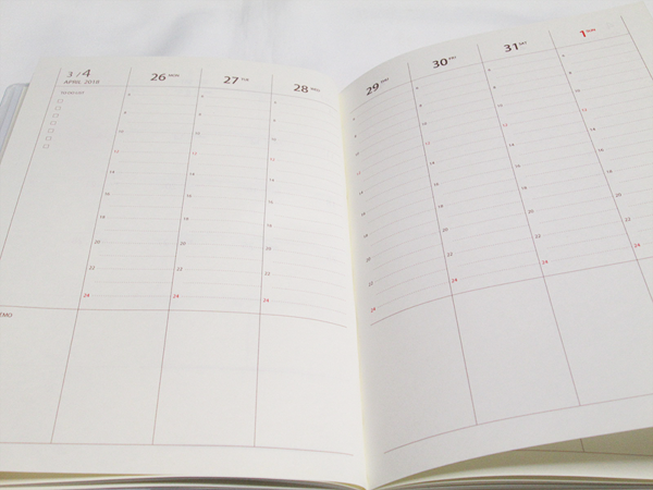 この見開きの週間スケジュールは一日ごとが大きく用意されているので、非常に使いやすいです。