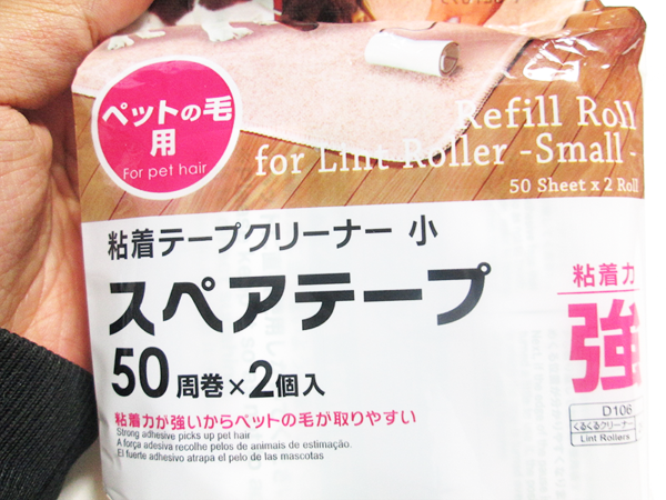 それを見越してなのかなんなのか、このくるくるローラーの直ぐよこにスペアテープが売っていて、しかもそれが「ペットの毛用」になってますしw