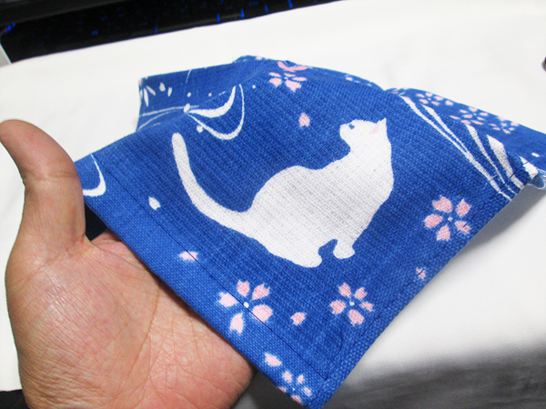 大きさが約25cm四方のガーゼハンカチです。ガーゼというくらいなので吸収性はかなり良いです。縫い方がちょっと粗めにはなっていますが、肌さわりは良いですね、むしろこれくらいのほうが気持ち良いと思います(*´ω`*)