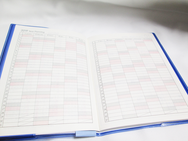 構成は、年間一覧に年間スケジュール、マンスリー、罫線メモ。オーソドックスな構成で使いやすくなってます。