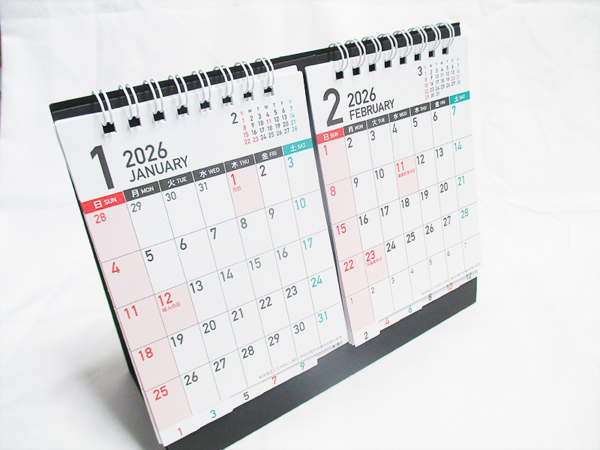セリアの「卓上カレンダー UniversalDesign TwinCalendar 2026」は、2ヶ月表示ができる便利な卓上カレンダーです。カラーで色分けされており見た目にも分かりやすいため、視覚的にも非常に見やすいです。ダブルリング形式でめくるのが簡単なのも嬉しいポイントです。マス目が小さいのでメモを書くにはちょっと厳しいですが、自宅はもちろんオフィスでも使えるスタンダードなデザインで好感がもてるので、スケジュール管理に便利でシンプルなカレンダーを探している方には、ぜひおすすめです。