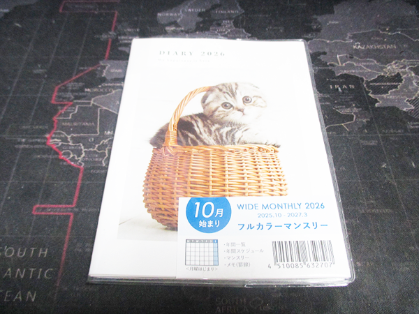 そろそろ来年のカレンダーや手帳が店頭に並び始め、どれにしようか迷う季節がやってきました。購入時期は9月はじめでしたが、今年もセリアにて購入した、とても可愛らしいダイアリーを見つけました。それが、今回の主役、**「2026年度 マンスリーダイアリー A6ワイドサイズ 56P 猫」**です。価格は税抜き100円と、お手頃価格でありながら、そのデザインと機能性には驚かされます。