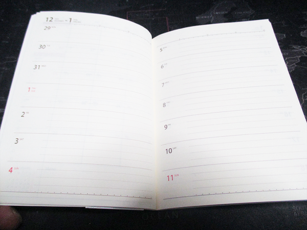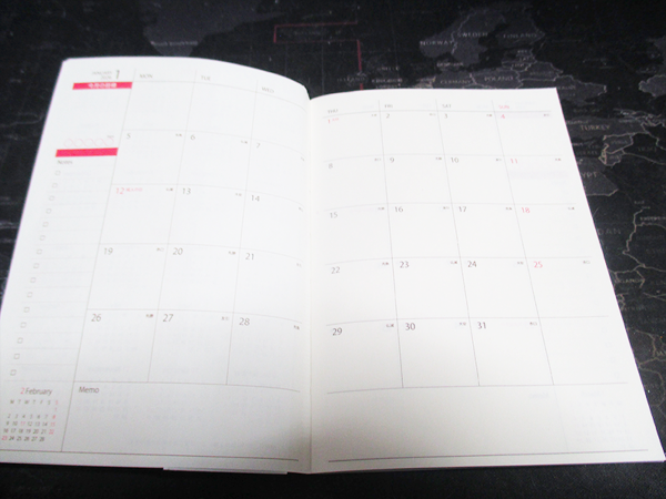 この手帳の最大の魅力は、その平綴じで角があり作りがしっかりしているという点に集約されます。かさばらず、カバンの中に入れても邪魔になりません。また、構成は年間カレンダー、見開き年間スケジュール、見開きマンスリー、見開き2週間ウィークリーと、非常に充実しています。マンスリーページでざっくりとした予定を管理し、ウィークリーページで日々のタスクや詳細な予定をしっかりと書き込むことができます。A6サイズというコンパクトさでありながら、この構成は非常に使い勝手が良いと言えます。
