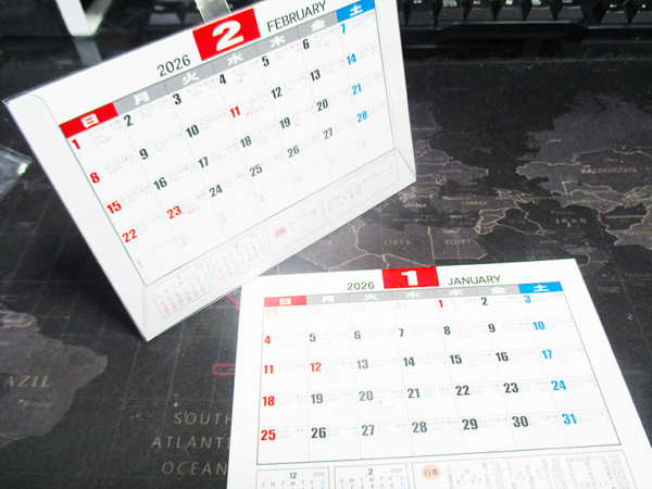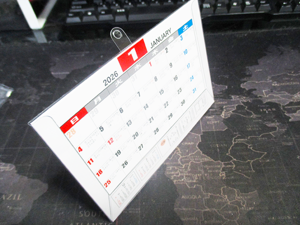 新しいカレンダーなので、実際の使い心地は同型の今年のカレンダー(2025年度版)での感想をもとに述べます。一年間使ってみて、このシンプルさの良さを再認識しました。予定を書き込むスペースは最小限ですが、日付の確認をするには十分な大きさです。卓上として使ったり、壁に掛けて使ったりと、その時の状況に合わせて使い分けられるのがとても便利でした。シンプルなデザインなので、どんなインテリアにも馴染み、飽きずに使い続けることができました。