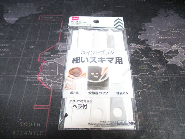 普段から、水筒の蓋の溝や、炊飯器のフタの裏側、そして哺乳瓶の乳首など、洗いにくい細かな部分の汚れに悩んでいました。特に、こびりついた汚れはなかなか落ちず、衛生面も気になっていたのです。ダイソーの掃除用品コーナーでこの「ポイントブラシ 細いスキマ用 ヘラ付き」を見つけた時、そのピンポイントで掃除できそうな形状と、ヘラ付きという機能性に強く惹かれました。3本セットで100円(税抜)という手軽さも、試してみるには十分な理由でした。