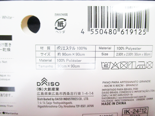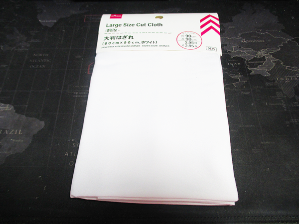 ダイソーで購入した「大判はぎれ(90cm×90cm、ホワイト)」のレビューをお届けします。