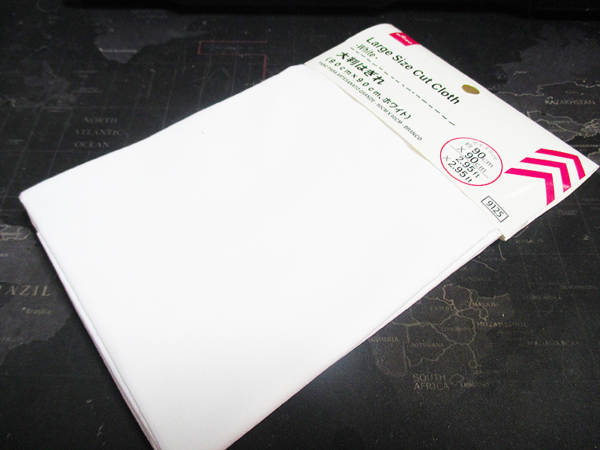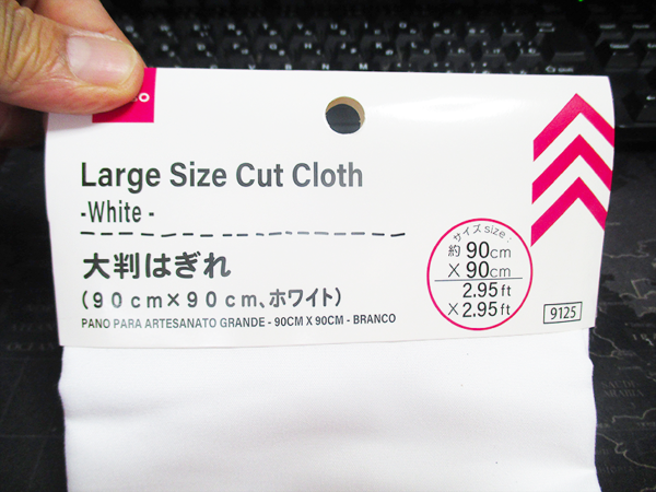 ダイソーで購入した「大判はぎれ(90cm×90cm、ホワイト)」のレビューをお届けします。