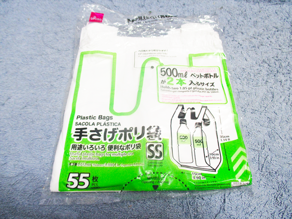 家庭内で使う袋は、用途に合わせて様々なサイズが必要になります。特に、細かなゴミの処理や、ちょっとしたものを入れて持ち運ぶ際には、大きすぎないミニサイズの手提げ袋が非常に便利です。今回、ダイソーにて購入した**「手提げポリ袋 用途色々SSサイズ」**は、ペットボトル500ml2個分の大きさという絶妙なサイズ感で、日常の「困った」を解決してくれる優秀なアイテムでした。