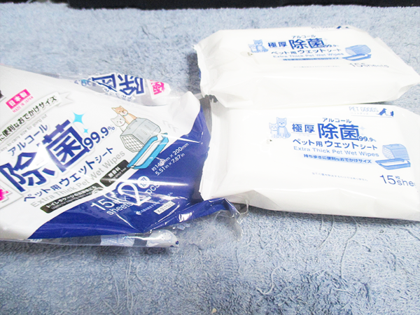 家の中の数カ所に分けて置いておけるため、汚れた場所にすぐに手が届きますし、一つを携帯用として持ち運び、残りの一つは玄関に、といった使い分けが容易です。これにより、粗相などの汚れをさっと拭いて綺麗にできるまでのタイムラグが減り、衛生的にも安心感が増しました。また、アルコール除菌99.9%という点も、ペット周りの衛生管理を気にする飼い主にとって、非常に心強いポイントです。