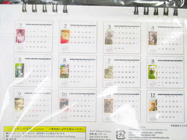 ダイソーにて購入した**「2026年度 卓上カレンダー (こねこ)」**は、コンパクトで場所取らずでありながら、子猫で癒やされるという最高の癒やしを提供してくれます。また、書き込むスペースも用意されているので、可愛さと機能性を兼ね備えた優れたアイテムです。機能的で可愛らしいカレンダーを探している方には、ぜひ一度試していただきたい商品です。