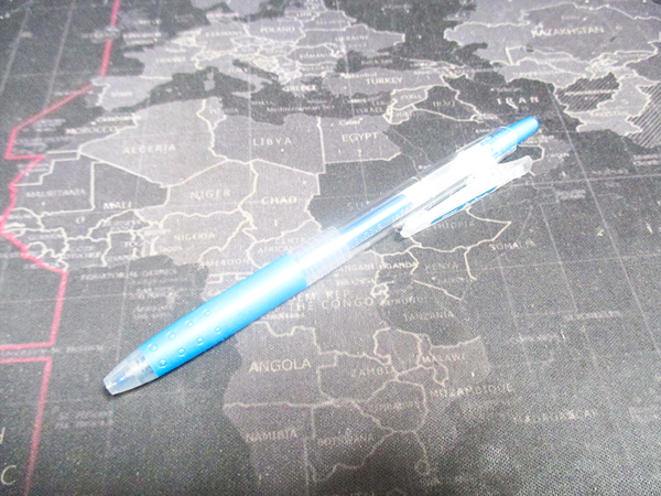 ダイソーで購入した「JUICE ゲルインキボールペン メタリックブルー」のレビューをお届けします。