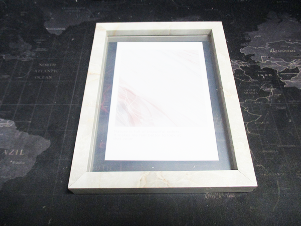実際にL判サイズの写真を入れて、壁に飾ってみました。写真の入れ替えは簡単で、背面の留め具を外して写真をセットするだけです。フレームに入れることで、写真がより一層引き立ち、おしゃれな雰囲気に変わりました。