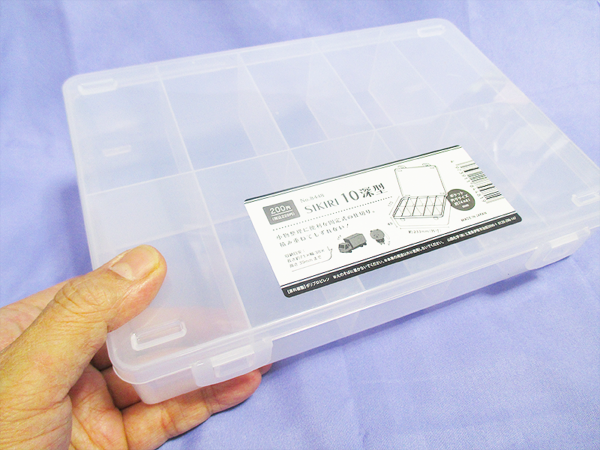 そんな時に店頭で見つけたのが、このSHIKIRIシリーズの仕切りが10個になっているバージョンで深型です。10分割という細かな分類力はそのままに、深さが加わったことで、収納できるアイテムの幅が劇的に広がると直感しました。**今まで仕切り10個の深型バージョンで200円、ダイソーならでは(キャンドゥもあるかもしれない)**という絶妙な価格設定も魅力的で、シリーズの統一感を保ちつつ収納力をアップデートするために、迷わず手に取りました。