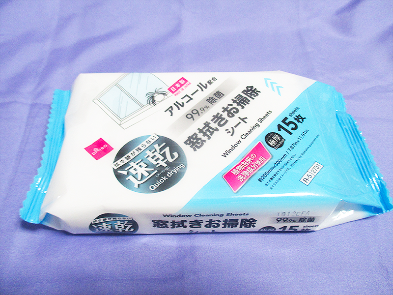 【レビュー】100均 ダイソー【速乾 窓拭きお掃除シート アルコール配合 15枚】拭き跡が残りにくいお掃除シートです