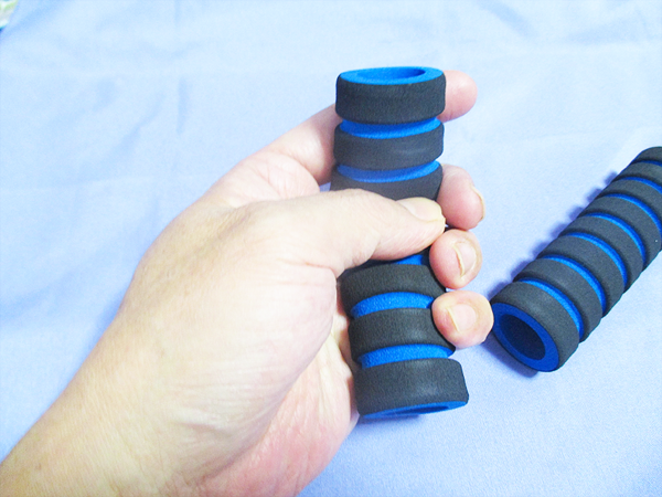 実際に、毎日買い物に使用しているママチャリに取り付けてみました。装着の際、はめ込むのにちょっと難があるものの、握る手はとてもリラックスできるという言葉通り、最初はきつくてなかなか奥まで入りませんでした。しかし、内側に少し石鹸水を塗るなどの工夫をすることで、しっかりと固定することができました。一度装着してしまえば、ハンドルを強く握っても空回りすることなく、抜群の安定感を発揮します。