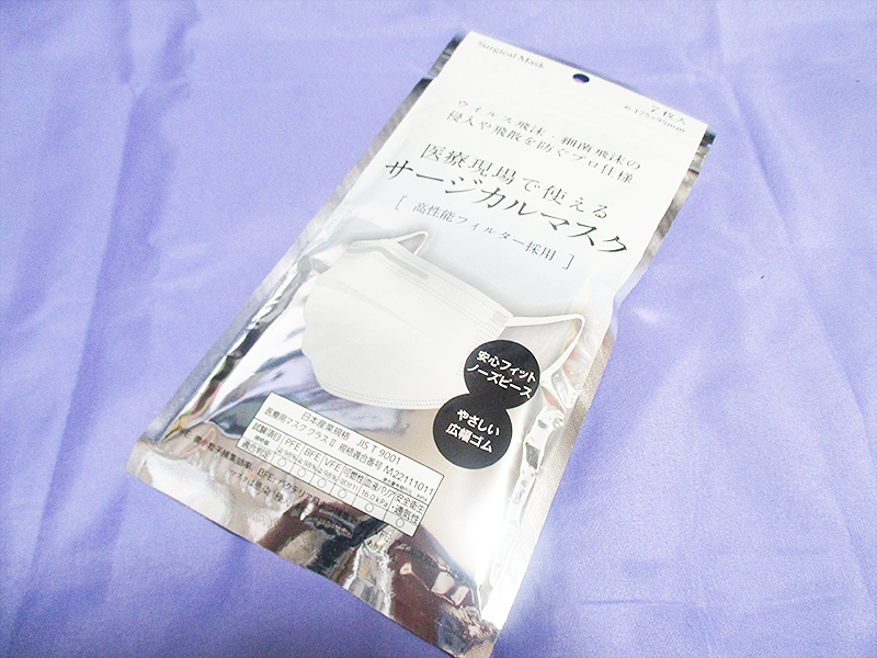 私がこのマスクを手に取った一番の理由は、パッケージに記された「医療現場で使える本格的サージカルマスク」という一言に強い信頼を感じたからです。一般的な雑貨としてのマスクではなく、医療用としての基準を満たしているという点は、風邪やウイルスが流行する季節において非常に大きな安心材料となります。