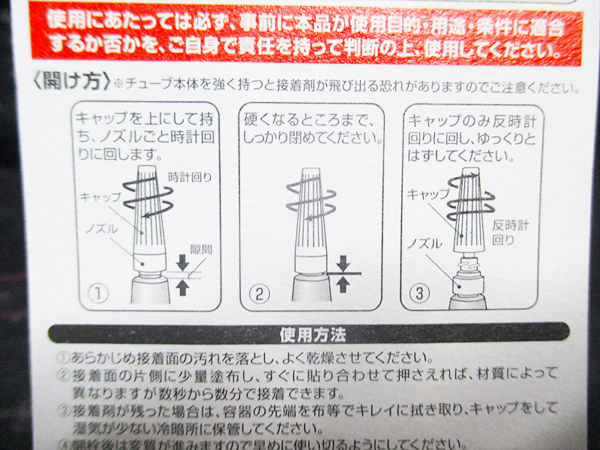 チューブから適量が出しやすく、細かい部分にも塗りやすいと感じました。使い切りではないので、残った分をしまっておけるのも、やはり便利だと実感しました。これ一本あれば、家庭内のちょっとした補修に困ることがなく、まさに「万能接着剤」だと感じました。