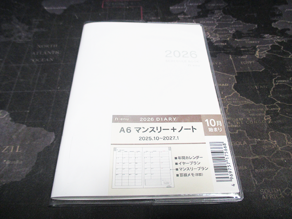 来年のスケジュール帳を選ぶのは、毎年ワクワクする作業ですが、多くの選択肢の中から自分にぴったりの一冊を見つけるのはなかなか難しいものです。私は、シンプルながらもメモ機能が充実している手帳を探していました。購入時期は9月中旬でしたが、今年もセリアにて購入した、非常に使い勝手の良いダイアリーをご紹介します。それが、今回の主役、**「2026年度 A6 ダイアリー マンスリー+ノート エヌ」**です。