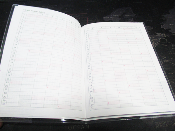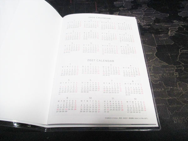 手帳の構成は年間カレンダー、見開き年間予定、見開きマンスリーと、スケジュール管理に必要な基本要素がしっかりと抑えられています。特に見開きマンスリーは、日付のマスが比較的書き込むスペースも多くて非常に使いやすいため、予定を細かく書き込んでもごちゃごちゃしません。そして、この手帳の大きな特長である、後半に罫線入りのノートがあり、メモをしっかり残すことができる点です。スケジュールページとメモページが分かれていることで、思考の整理がしやすく、会議の記録やTo Doリストなど、様々な用途に活用できます。