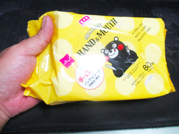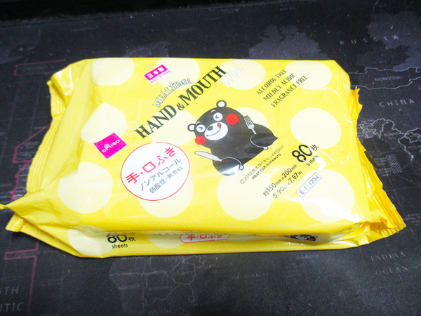 ダイソーで購入した「くまモン手ふき・口ふき ウェットティッシュ 80枚」のレビューをお届けします。