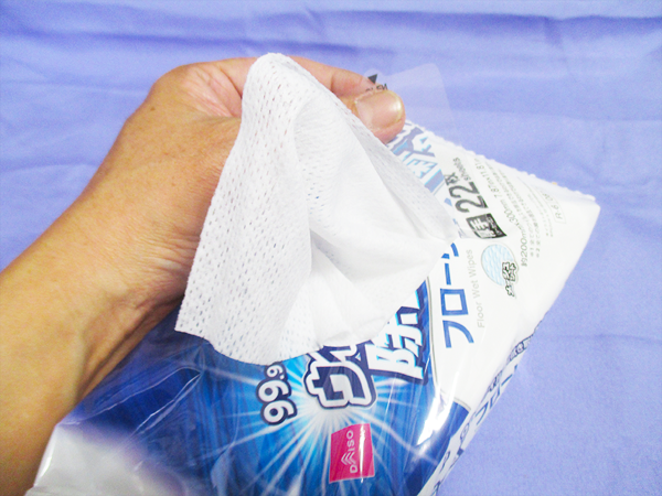 実際に、リビングとキッチンのフローリングで使用してみました。パッケージから取り出すと、期待通り「厚手」の質感があり、22枚、標準サイズ、保水率よしという通り、水分が滴り落ちるほどではありませんが、最後までしっとりとした状態を維持してくれました。