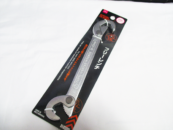 また、このフリーレンチは独自のギザ刃構造を持っており、角が少し潰れてしまったボルトにも対応できるという点が大きな決め手となりました。100円ショップのダイソー商品ではありますが、200円という価格設定に、メーカーの並々ならぬ自信と品質への期待を感じ、家庭用の常備工具として最適だと判断して購入しました。
