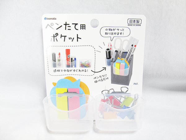既存のペン立てなどの一辺に挟み込んで使用する小物入れです。