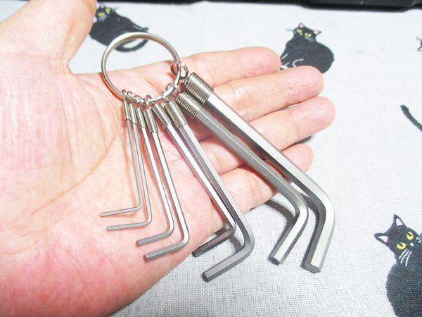 実際に、長年愛用している自転車の各部パーツの緩みをチェックするために使用してみました。ホルダー部分が程よい太さのグリップになるため、力を込めやすく、しっかりとボルトを締め込むことができました。8本組の六角棒レンチとして、1.5mmから6mmまでの主要サイズが揃っているため、ステムからライトの取り付け金具まで、これ一つで完結できるのは非常に快適です。