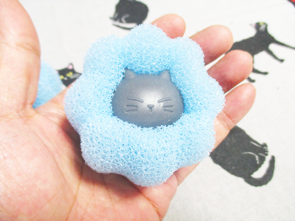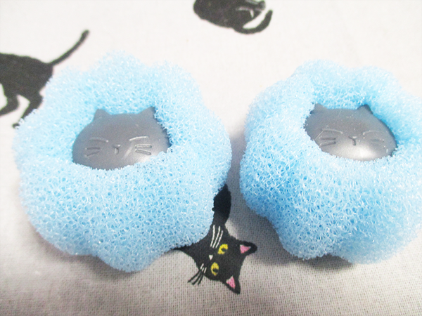 私がこの商品を選んだ理由は、何よりもそのキャッチーなルックスに目を引かれたからです。洗濯用品コーナーには機能性を重視したシンプルなボールも並んでいましたが、この黒猫の洗濯ボールで糸くずやホコリを絡め取って衣類に付着するのを防いでくれるという魅力的な説明と、ひょっこりと顔を出した猫のデザインに心が動きました。