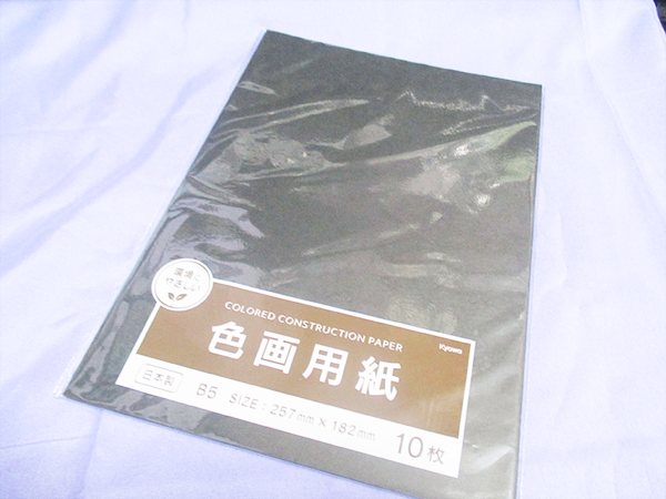 私はこの**B5サイズの色画用紙(黒)**を、主にアクセサリーの撮影用背景と、メッセージカードの台紙として使用しました。