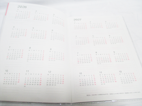 新しいダイアリーなので、実際の使い心地は同型の今年のダイアリー(2025年度版)での感想をもとに述べます。一年間使ってみて、このシンプルさの良さを再認識しました。予定を書き込むスペースが十分にあり、ごちゃごちゃせずに済みました。また、シンプルな構成なので、迷うことなくサッとページを開くことができ、ストレスなく使えました。猫のデザインは、毎日持ち歩くたびに心が和む、最高の癒やしでした。