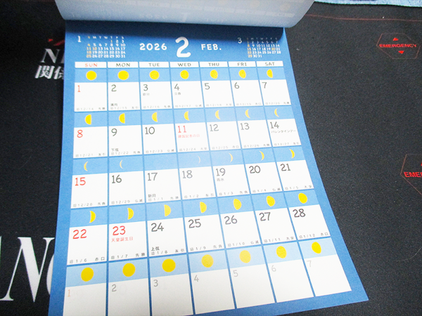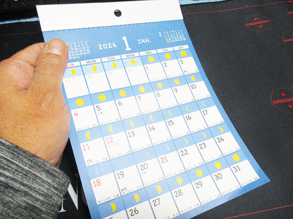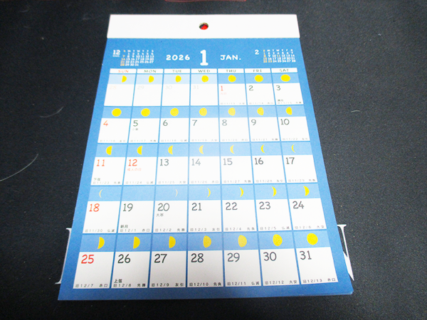 去年の同型の今年のカレンダーを一年間使ってみて、生活に大きな変化がありました。この月齢がわかるカレンダーを常に目にすることで、無意識のうちに月のリズムを意識するようになりました。