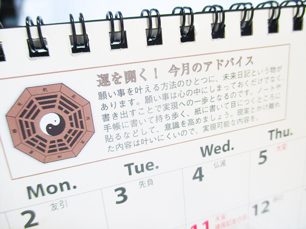 高価な風水グッズや専門書は敷居が高いと感じていましたが、これなら誰でも気軽に風水に触れることができます。また、カレンダーとしての機能も十分で、日付の文字も大きく見やすく、予定を書き込むスペースもしっかりと確保されています。シンプルでどんなインテリアにも馴染むデザインも嬉しいポイントです。