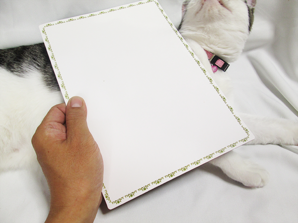 マグネット製のホワイトボードです。サイズはA4の大きさです。ホワイト用のマーカーで書いて消せます。