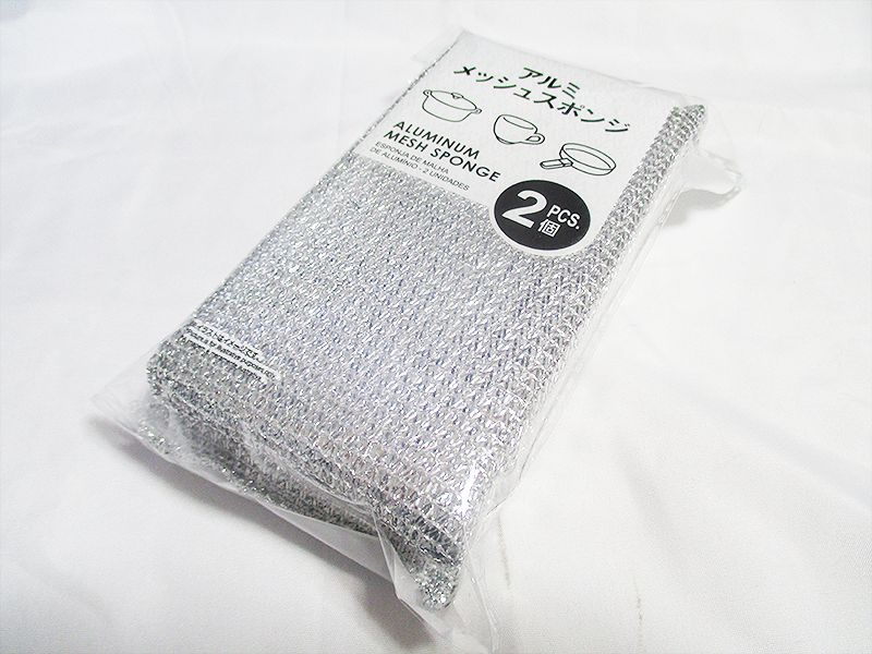 【レビュー】100均 ダイソー【アルミメッシュスポンジ 2個入】アルミメッシュのお陰で柄頑固な汚れを落とせるスグレモノ!